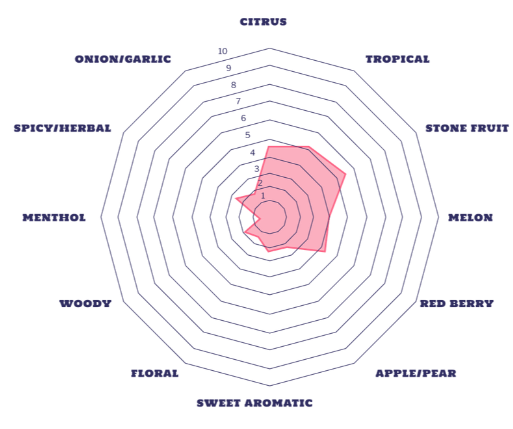 - Aroma: Tropical fruit flavors and aromas of pineapple, pear, watermelon, and stone fruit.
